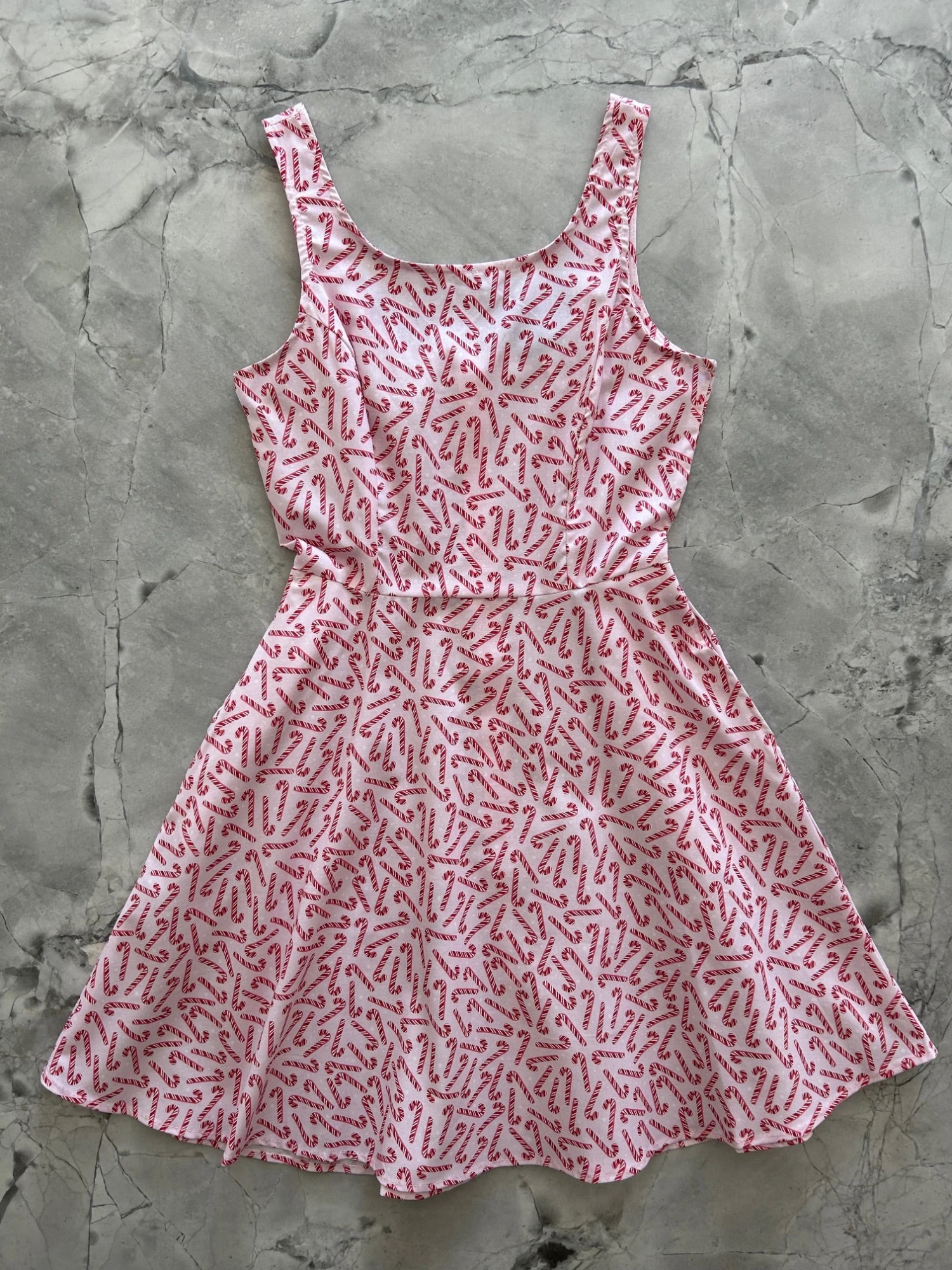 Fun, flirty, and totally retro: our skater dress is the perfect addition to your closet! Shown in our Candy Cane print, this vintage inspired dress features a scoop front and back, elasticized waist in the back for ease of wear, a flirty a-line skirt with hidden side pockets, and a back zippered closure.