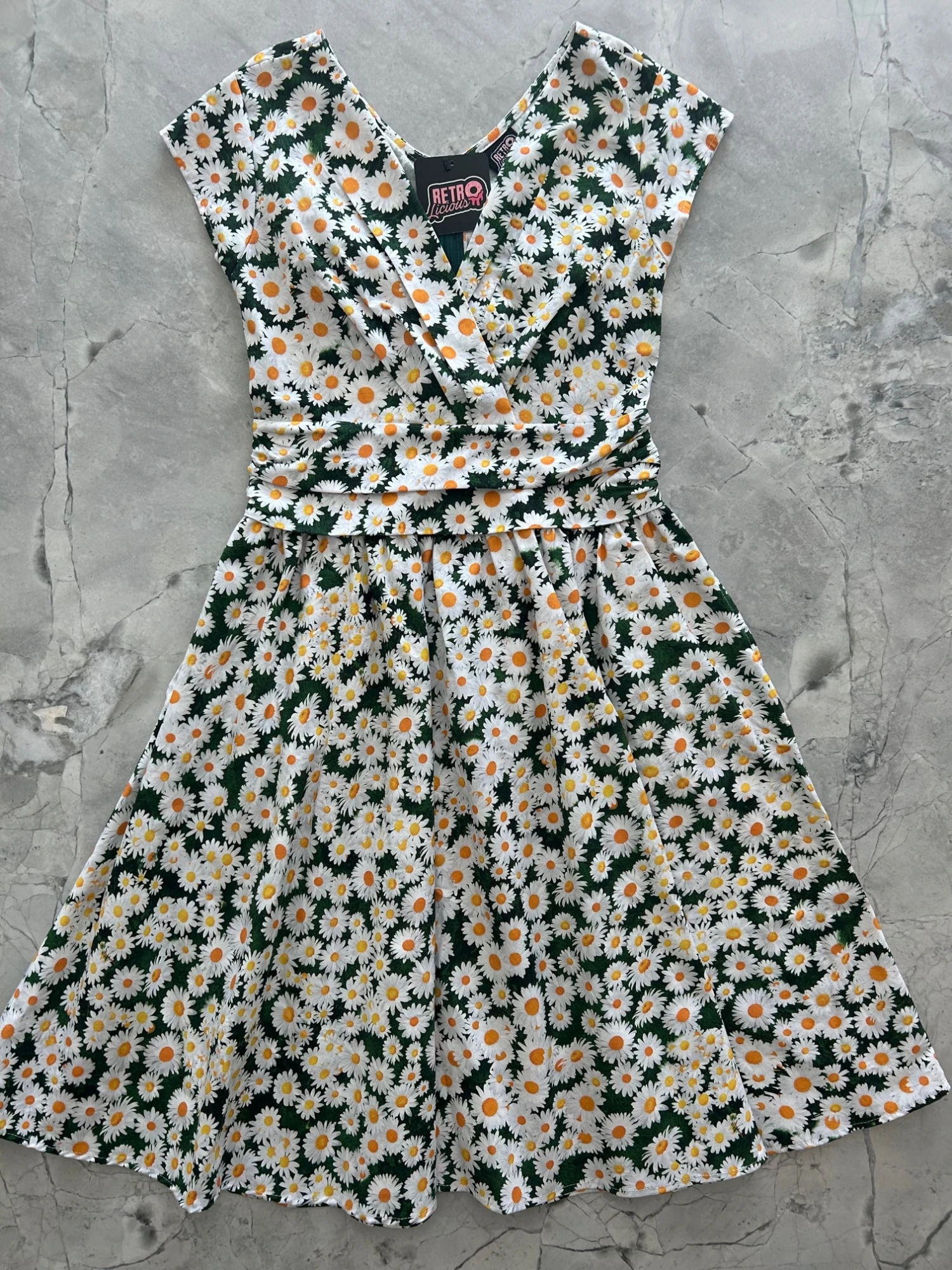 Looking for a classic yet comfortable 1950’s style dress? The Greta is everything you could want and more! Shown in our fun Daisy print, this vintage style cotton dress features a gathered surplice neckline, cummerbund waist with figure flattering gathers, a vintage inspired twirl-worthy skirt with hidden side pockets, and a back zippered closure.