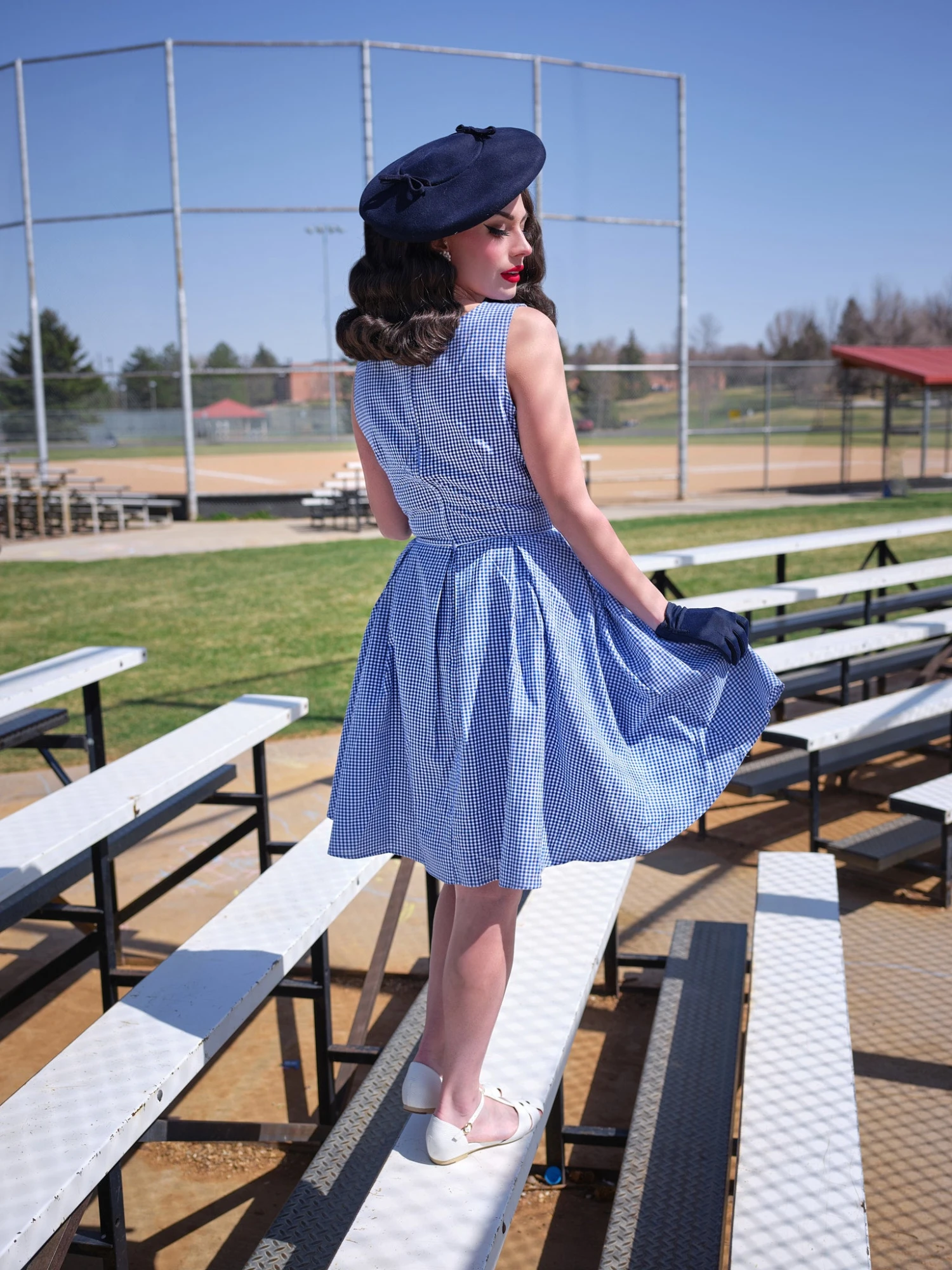 Looking for a classic vintage style dress? Our Elizabeth cut with all its details is everything you could want and more! Shown in our pretty blue gingham print, this cotton dress features piping details throughout the bodice with front non-functional buttons, waist with figure flattering pleats, a vintage inspired twirl-worthy skirt with hidden side pockets, and a back zippered closure.