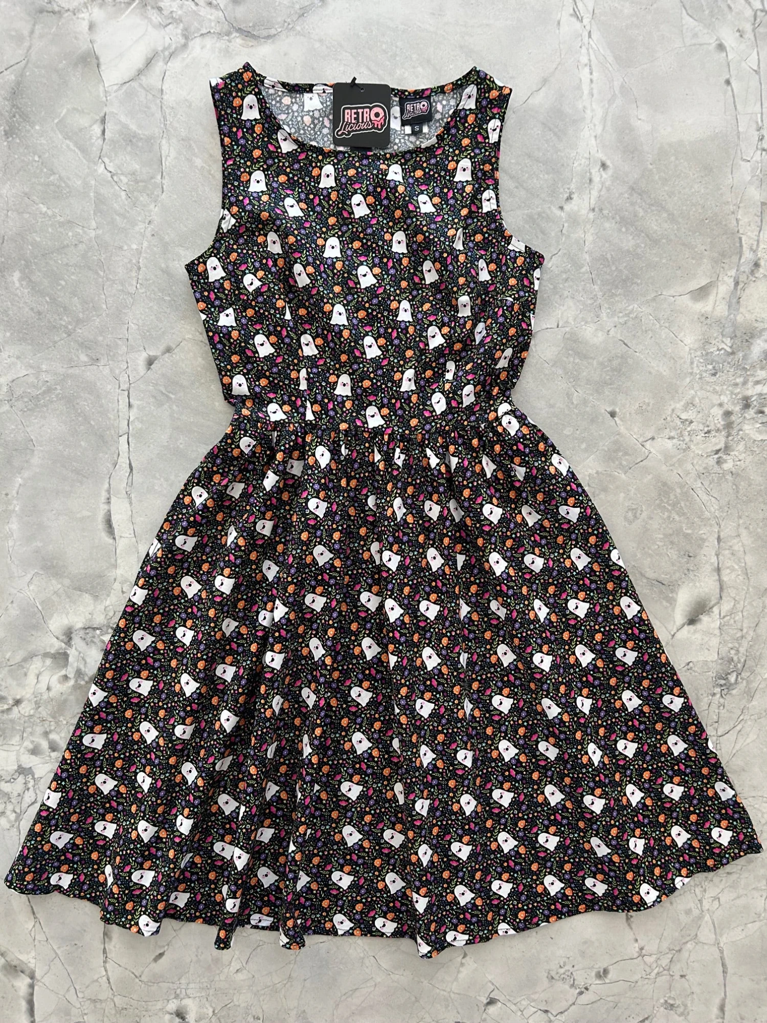 A vintage style piece with fun, modern details in our Ghost Floral print. Made from 100% cotton, this classic 1950’s inspired dress features a high neckline, longer length skirt with hidden side pockets and back zippered closure.