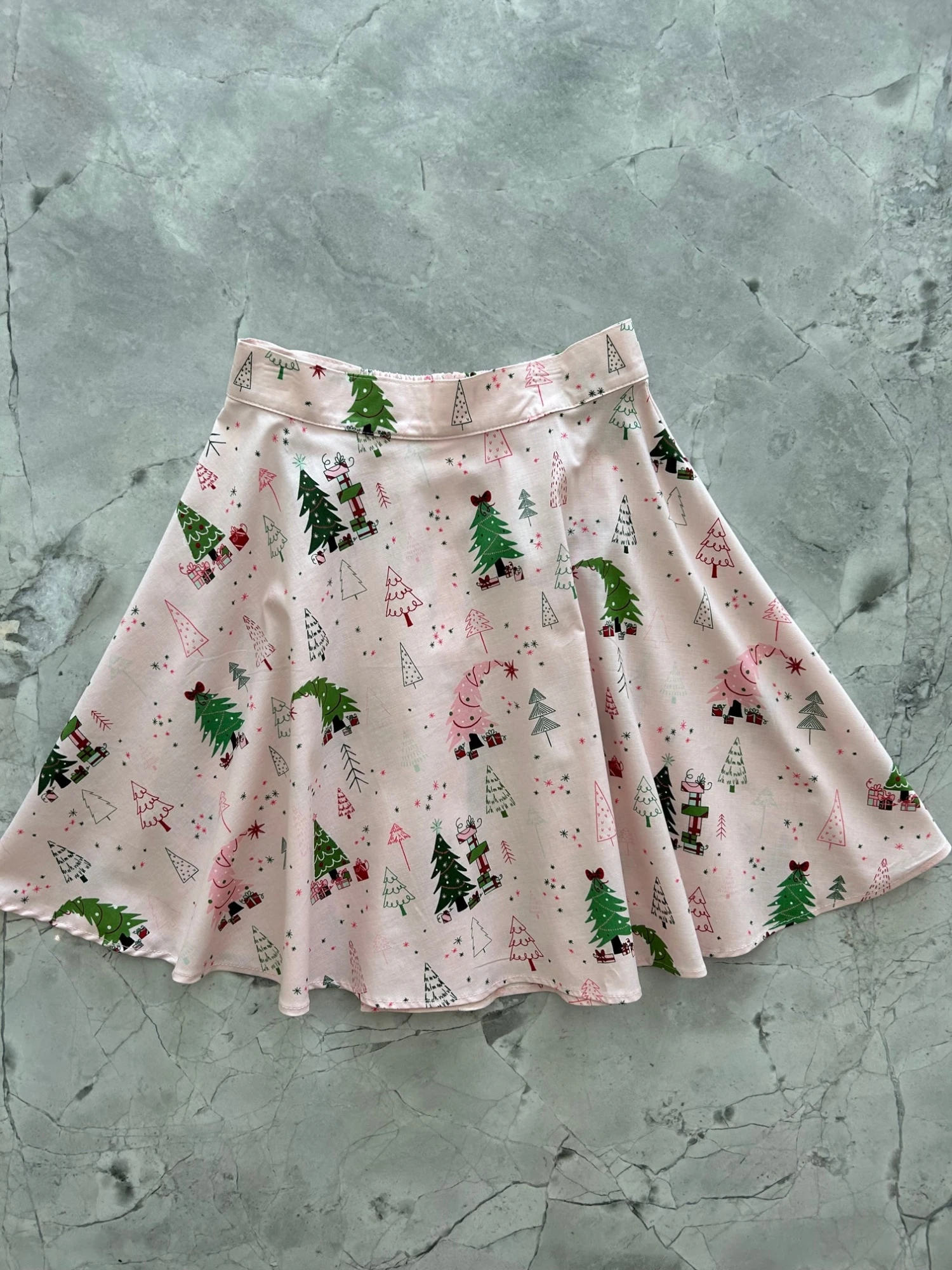 Introducing our Gifts Skater Skirt. This charming skirt features a delightful pattern of trees and stacked gift boxes on a pretty pink background, adding a touch of holiday magic to your outfit. With its skater-style design, it’s perfect for twirling through festive celebrations with style. Unwrap the joy of the season with this whimsical and festive piece!