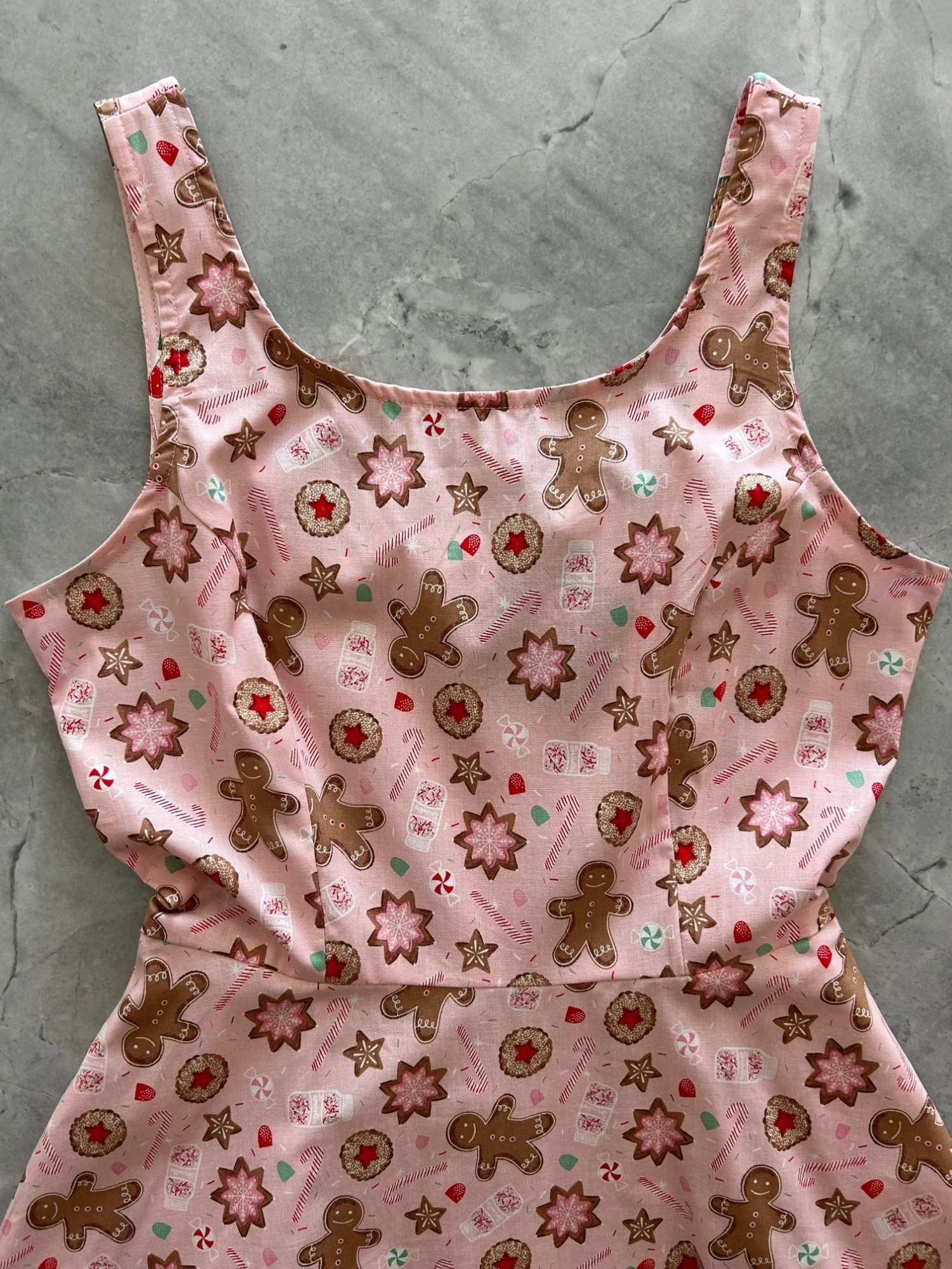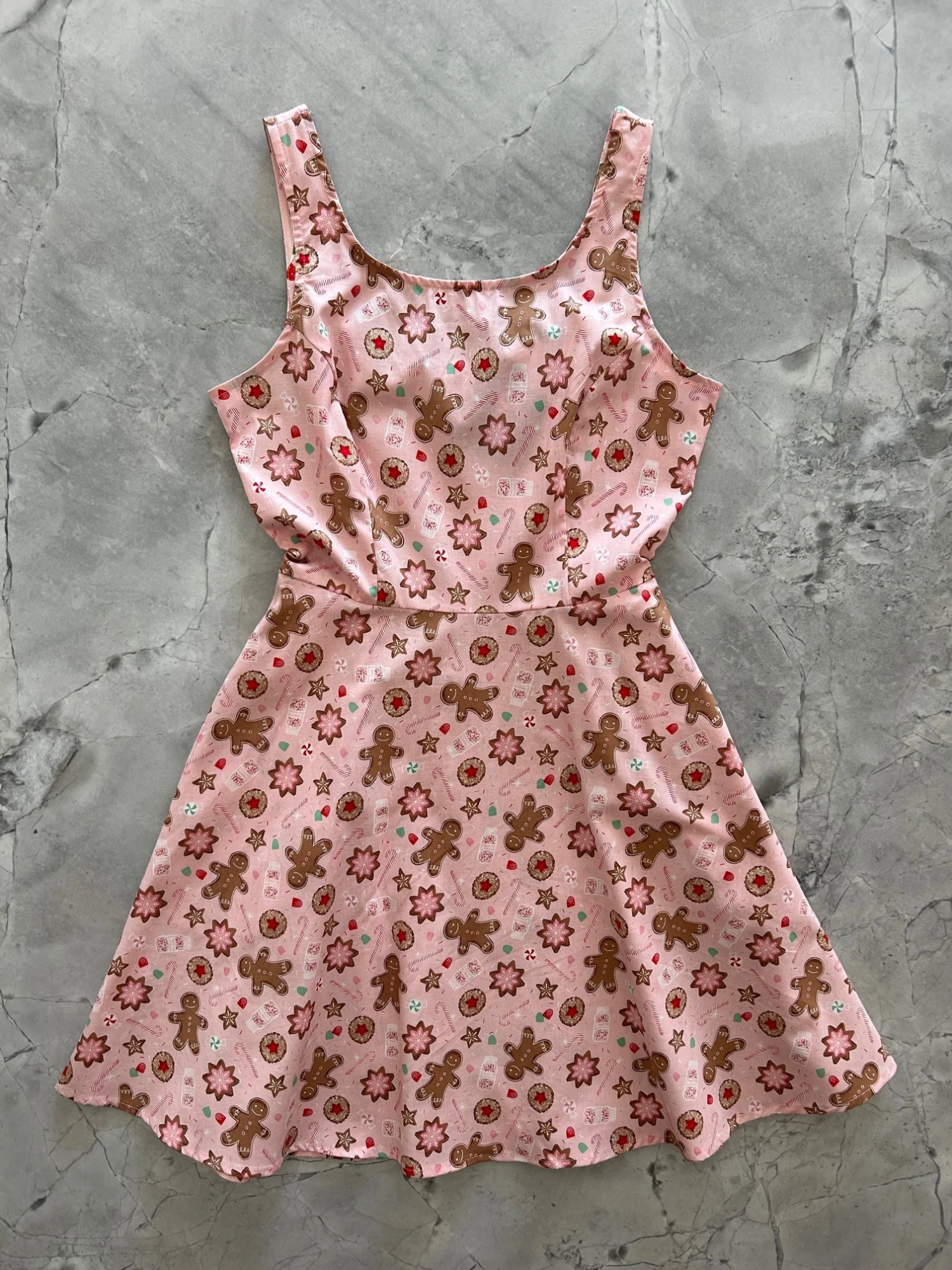 Introducing our Holiday Treats Skater Dress. This dress is a delightful confection of gingerbread man cookies, milk, and candy canes in a whimsical print on a pretty pink background. It’s the perfect choice for adding a playful and festive touch to your wardrobe. Celebrate the season with style and a sweet tooth!